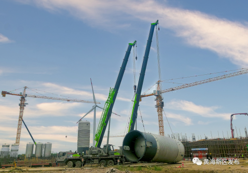 “调整一下角度,方向向左一点,匀速升起……”5月12日上午10时,在黄海新区滨海片区江苏蓝素PHA项目建设现场,随着吊装调度人员的一声声指令,在阵阵机器轰鸣声中,一个重达数十吨的发酵罐缓缓升空,奔向指定位置。