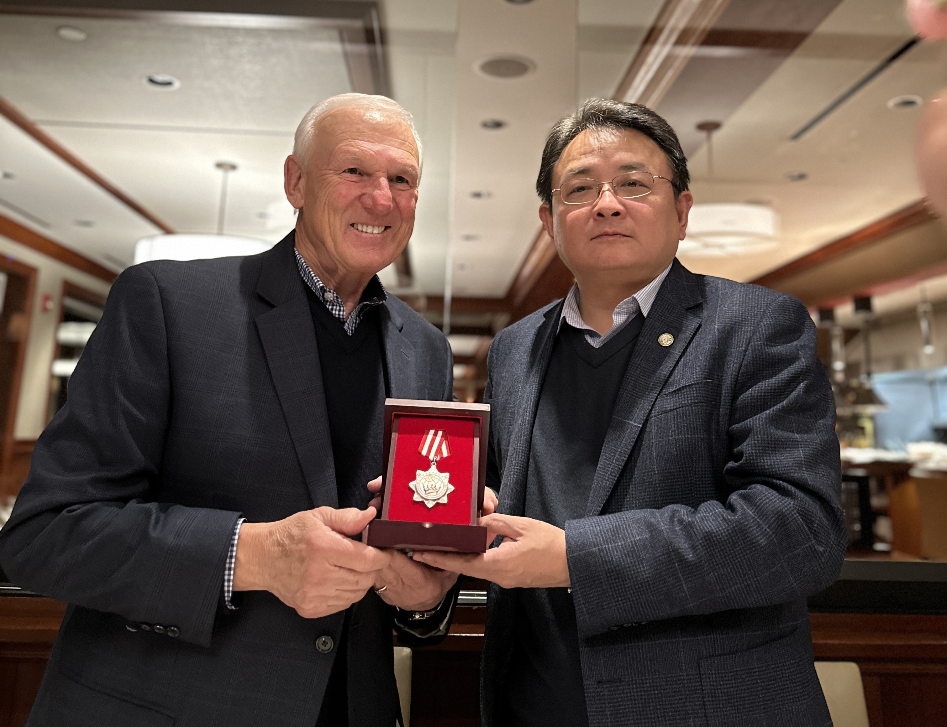 On the evening of 7th, the delegation also held a dinner with former chairman Ron Roberts of San Diego County Board of Supervisors. During the dinner, Vice Mayor Tang Jing awarded Mr. Roberts the Memorial Medal for International Friendship between Sister Cities of Jiangsu Province to recognize his outstanding contributions to promoting the exchanges and cooperation between Yancheng and San Diego County.
