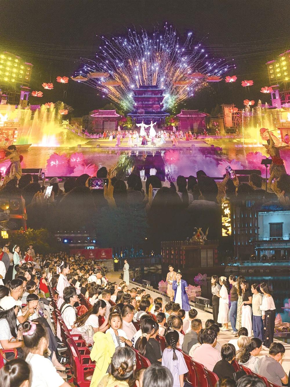 景区夜游演艺格外精彩。荷兰花海人气爆棚,绚烂花田搭配“爱上夜花海”音乐汇,沁人花香与动人歌声里,满是浓郁节日气息。西溪天仙缘好戏连台,大型仙幻实景演出《天仙缘》震撼开演,天仙梦幻巡游、犁木街《范仲淹》情景剧、《穿越汉潮街》沉浸式演艺轮番登场,尽显夜游魅力;盐镇水街的“千灯庙夜”汇聚演艺、巡游、音乐,解锁盐城最浓烟火气。