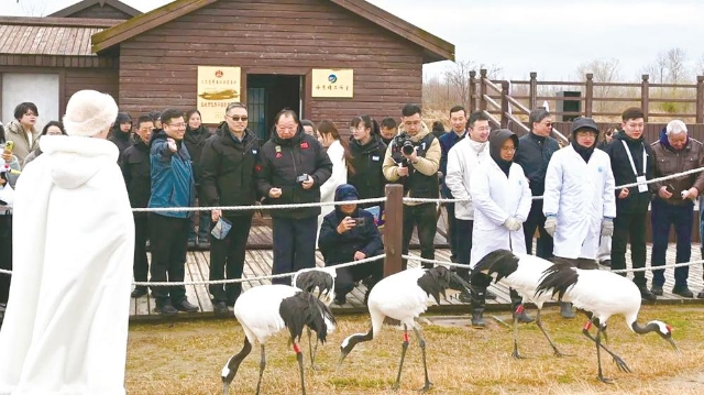 接下来,大家前往盐城丹顶鹤湿地生态旅游区,这里是丹顶鹤等珍稀鸟类的天堂。广阔无垠的湿地,翩翩起舞的鹤群,构成了一幅动人心魄的生态画卷,让人不禁为大自然的神奇与美丽所折服。