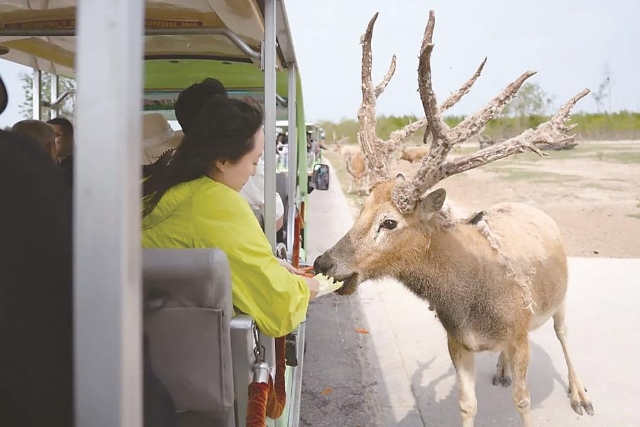 “鹿小鸣巡游”让游客们能够在游玩的同时近距离跟园区内“明星麋鹿”进行互动。在丹顶鹤湿地生态旅游区,看到天空盘旋的丹顶鹤,游客纷纷举起手中的“长枪短炮”记录精彩瞬间。来到条子泥“滩玩”、观鸟、打卡,游客深度融入自然,尽享湿地野趣。