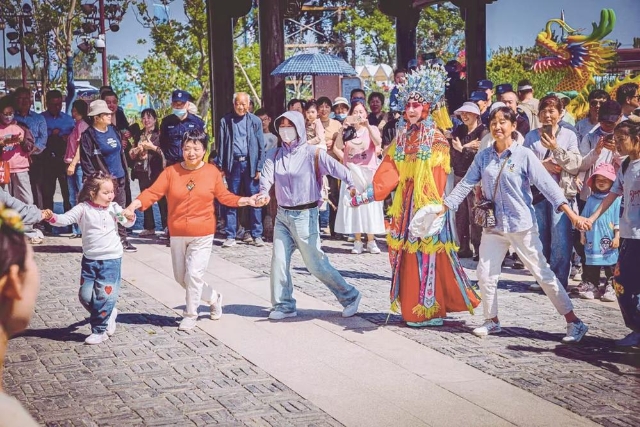 九龙口无人机龙灯秀点亮星空,“VR看淮剧”、机器人淮剧互动为游客带来新奇视角。日月岛康养旅游度假区推出“智启低空星际漫游”主题活动,“星际舰队”编队飞行,无人机点亮夜空,吸引了众多游客前来打卡。大纵湖千人篝火晚会嗨翻全场,夜晚烟花秀更是把节日氛围推向高潮。鱼市口大集创意性结合“草坪与集市”,碰撞传统与潮流,集齐“吃喝游娱购”项目,游客的多元需求,都可以在这里得到满足。盐镇水街别具匠心地将淮剧演出与非遗体验深度融合,游客在漂舟戏苑欣赏淮剧经典剧目的同时,还能逛集市、品尝盐城非遗美食。在泊心黄沙港景区,游客可以乘船赶海,体验非遗渔网编织,还可以品尝最新鲜的海味。
