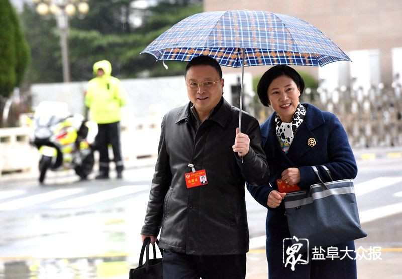 政协委员们冒雨步入会场