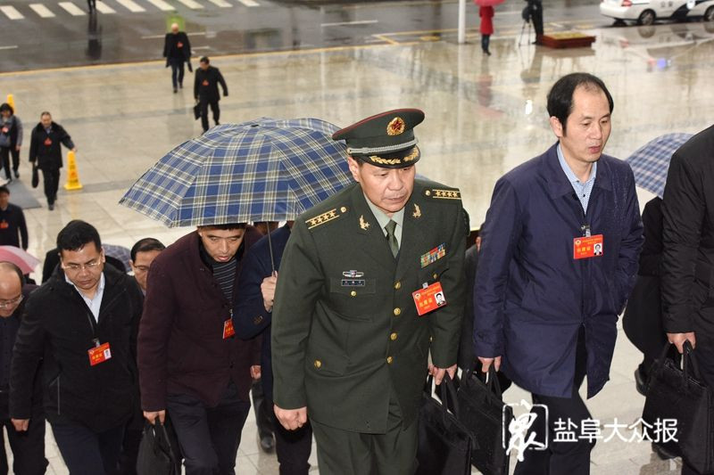 政协委员们冒雨步入会场