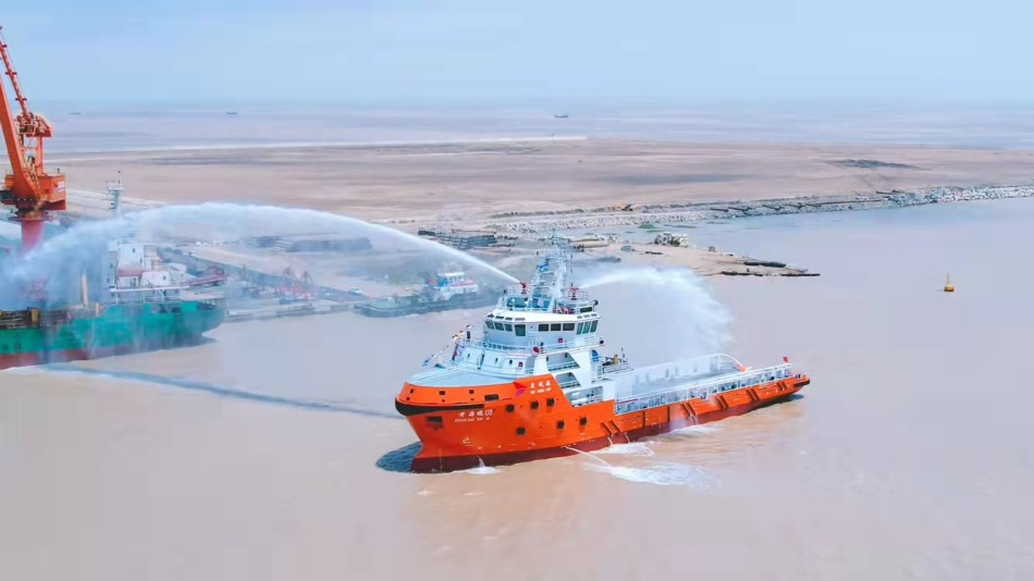 据介绍,该轮是一艘12000马力多用途应急救援拖轮,与江苏省港口集团“苏海01”号同为江苏沿海港口最大的多用途拖轮,设施设备先进、服务功能齐全,具有马力大、功能多、救援能力强等特点,可承担海上应急抢险救援、风电安装维护、江海大型特种拖带、供应保障服务、溢油回收、平台定位等各类综合性服务。