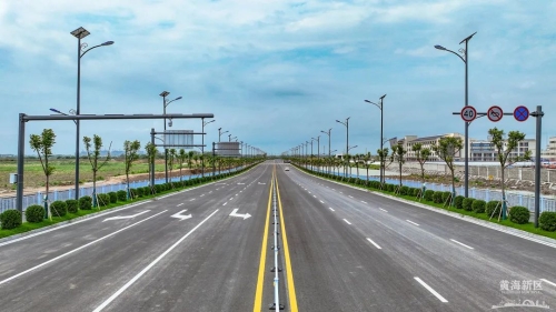 由海兴集团投资建设的海油南路全长1627米,设计时速40公里/小时,双向六车道,道路起于六合路,经中海油江苏滨海LNG接收站南侧,止于海堤路。
