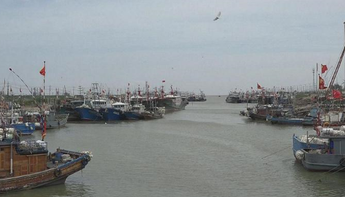 9月13日上午,盐城市滨海县沿海风力已经达到了7级、海面浪高在两米左右,在滨海港翻身河闸外侧的航道,已经停满了回港避风的渔船。几名农业农村局的行政执法人员正在三号码头上,对进港停泊避风的渔船进行仔细的检查登记,查验船舶缆绳的固定情况,并通过海洋渔业船舶管理平台,实时查看沿海海面有无船舶滞留在海面上。