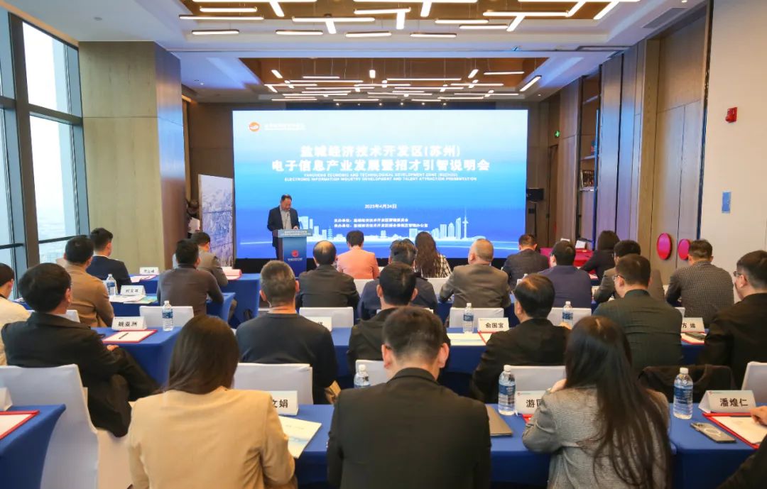 4月24日,由盐城综合保税区承办的2023盐城经济技术开发区电子信息产业发展暨招才引智说明会在苏州古运河畔成功举办。来自长三角电子信息行业30余家企业、商协会的嘉宾代表齐聚一堂,大家畅叙友谊、共谋发展。区党工委副书记董玲玲参加并致辞。