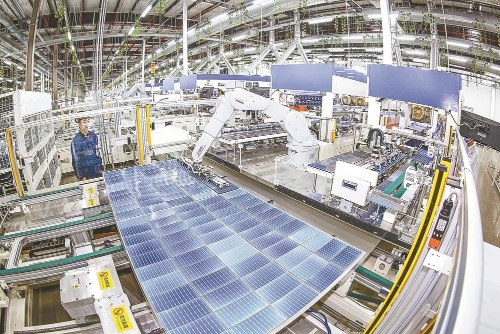 SK新能源(江苏)有限公司是韩国SK集团全球布局中最大的产业基地,一季度一期项目开票销售同比增长167%。二期30GWh动力电池项目总投资25.3亿美元,是近年来盐城最大的利用外资项目,正在进行设备安装调试,计划下半年投运试生产。江苏双晶新能源科技有限公司车间里生产正忙,一台台自动化生产设备有序运转,一期项目预计6月底实现满负荷生产,项目全部量产后年开票销售可达90亿元。