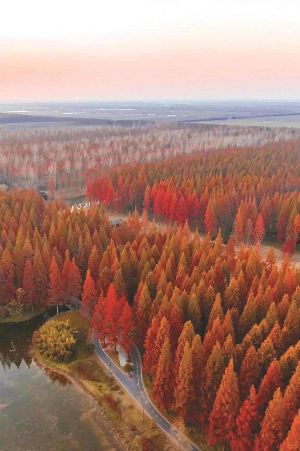 沿着黄海1号公路一路向南,就可以进入童话般的红色水杉林,拍照打卡必不可少,文旅君为你推荐8处打卡点,助你咔咔拍大片。