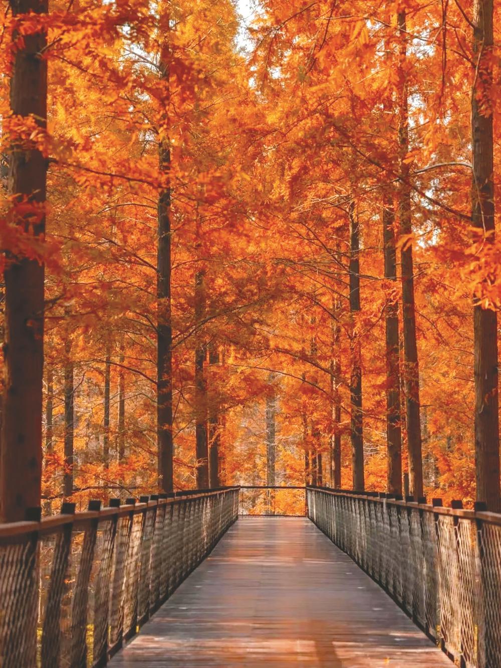 漫步林间栈道,每一步都是风景的盛宴,伸手可及的红水杉树叶,如同初冬里的一抹温暖,点亮了这片林间世界。在黄海森林公园的空中栈道点位打卡,与这片浩瀚的森林同框,定格成一幅动人的画卷。