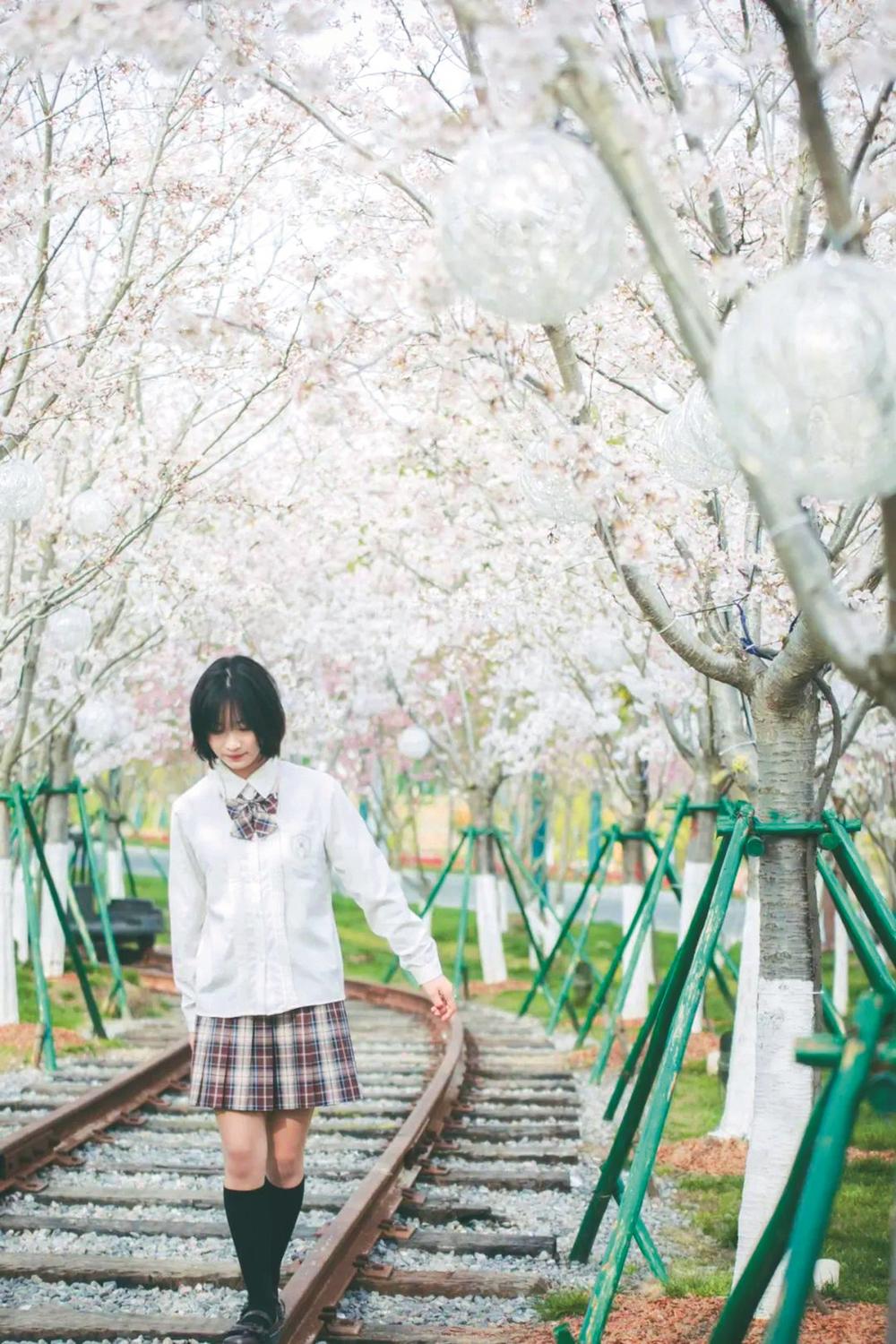 当樱花配上延伸的轨道,一下子那唯美feel就出来了。在这七彩铁轨上拍照、散步很是舒心,樱花下的火车轨道,当花瓣自由慵懒散落的那一刹,快门一按,那画面真的是巨好看。