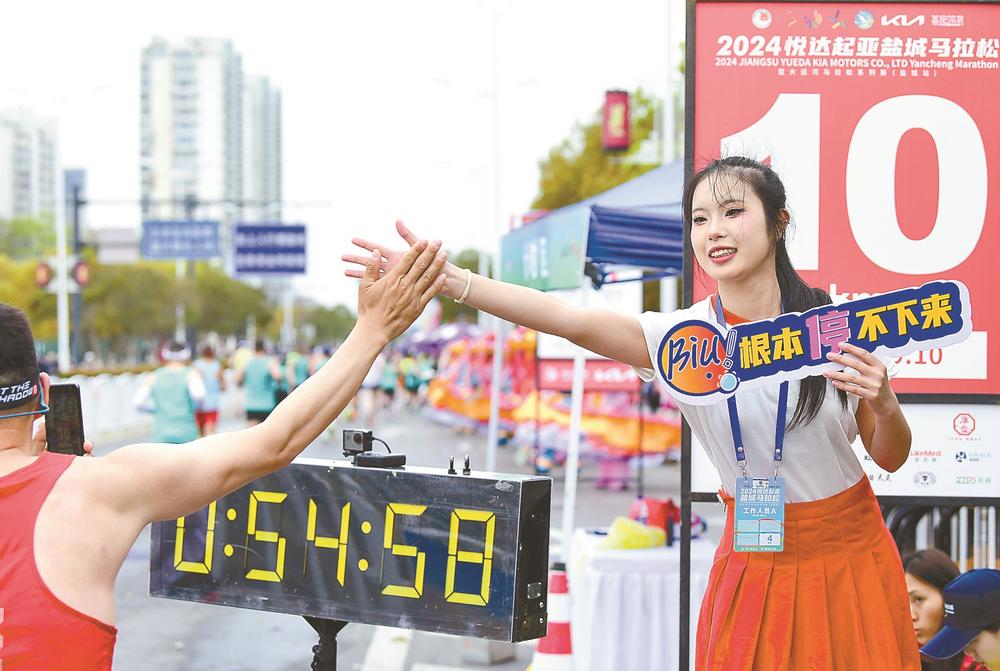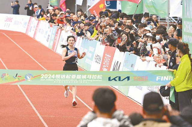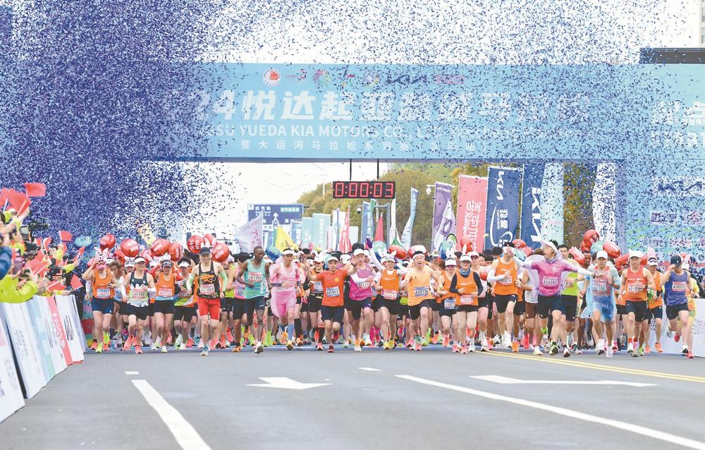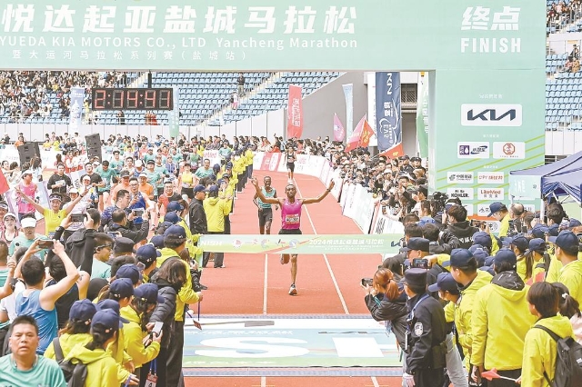 4月14日,2024悦达起亚盐城马拉松暨大运河马拉松系列赛(盐城站)隆重举行。上午7点半,随着一声发令枪响,市奥林匹克体育中心内,来自国内外的1.5万余名跑友带着顽强的斗志和拼搏的精神向终点全力开跑。
