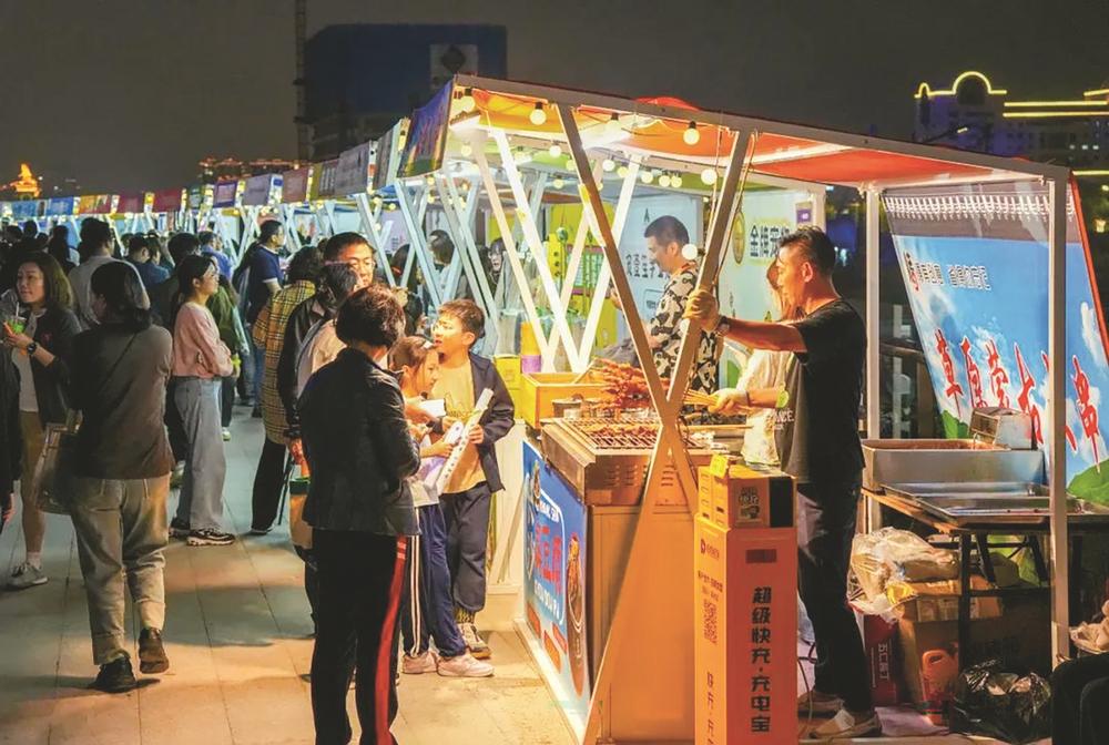“音乐、相声、美食,还有不少休闲空间,以后还会经常和朋友来这边转转。”在“串场之眼”美好市集,大二学生李登涛心满意足地吃着烤串儿,和朋友一起见证开幕式的盛况。现场还有臭豆腐、烤鱿鱼、团团手作等一系列摊位,让游客在观赏精彩演出的同时,也能够得到味蕾上的满足。