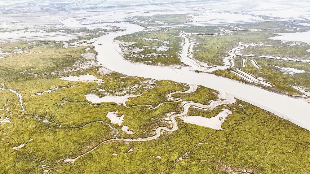 初夏时节,黄海之滨的湿地滩涂绿意翻涌,鹤舞鹿鸣,步步入画、处处是景。