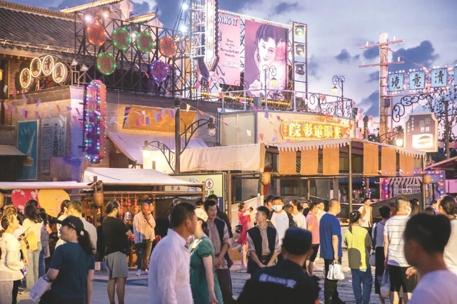 夜间音乐狂欢是让人们短暂逃离现实的多巴胺,夜市美食是最接地气的人间烟火。演出场地内电音季带来的震撼与激情持续升温,而相邻的渔档长街大排档则是另一番热闹的景象,捞汁小海鲜、臭豆腐、拇指煎包、烤冷面、酸梅汤、鲜榨果汁……熙熙攘攘的人潮、香气扑鼻的美食,听觉与味觉激情碰撞,音乐声和欢笑声此起彼伏。