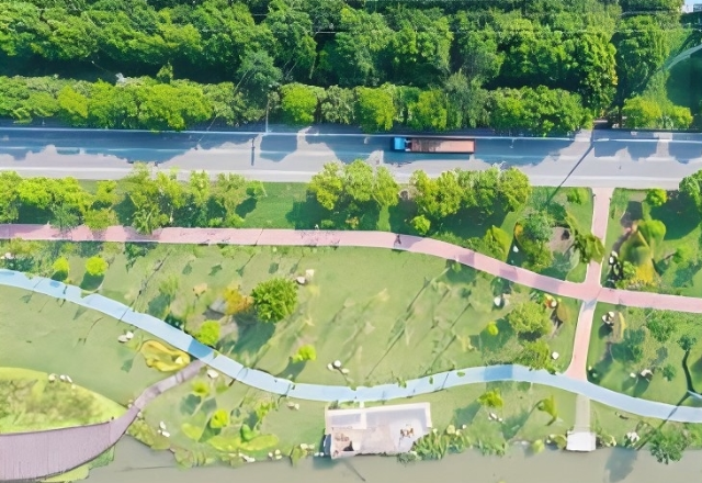 2023年,网界河风光带被划定为东台市首批11个开放共享绿地之一,通过打造无界汇智慧公园,汇集亲子童趣体验、科创互动展示、邻里运动社交三大主题,在美丽的生态长廊中人与自然、城市与河流、过去与未来在此沟通对话。