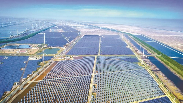 东台新能源产业起步早、体量大、层次高。从国能、鲁能、中节能、华电、国机、国信等一大批央企国企纷纷抢滩东台沿海,点燃清洁能源发展“强引擎”,到上海电气、上海玻钢院等大型国企推进新能源利用与“智”造互动并进,再到总投资均超百亿元的晶澳太阳能、智泰新能源、天合光能等头部企业安家落户,东台新能源产业加速向高端前沿强链补链。今年上半年,该市新能源发电量26.2亿千瓦时,占全社会用电量71.4%,覆盖工业用电量。来自国家科技部权威数据,2023年度全球可再生能源发电量首次超过总发电量的30%。绿能利用,东台走在世界前列!目前,东台正依托资源优势,在持续壮大规模的同时加快放大绿电价值,聚力打造长三角北翼重要新能源基地。统筹推动滩涂和近远海“风光”综合高效利用,加快推进国内首个海上“风光氢储”能源岛、风光同场和陆上集中式光伏等项目建设,稳步推进屋顶分布式光伏开发,预计年内新能源发电量突破50亿千瓦时。在此基础上持续招龙头、补链条、聚集群,构建研发设计、装备制造、运营维护、回收利用的新能源全产业链条。