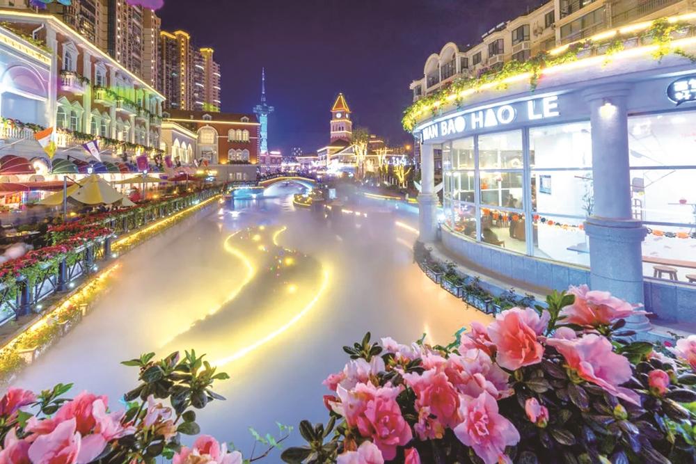 华灯初上,欧式建筑在灯光映衬下格外迷人,霓虹闪烁,音乐流淌,充满异国情调的夜晚就此拉开帷幕。与同学、好友找一家特色餐厅,享受美食,畅谈未来,在街头艺人的表演中感受夏夜的活力与浪漫。