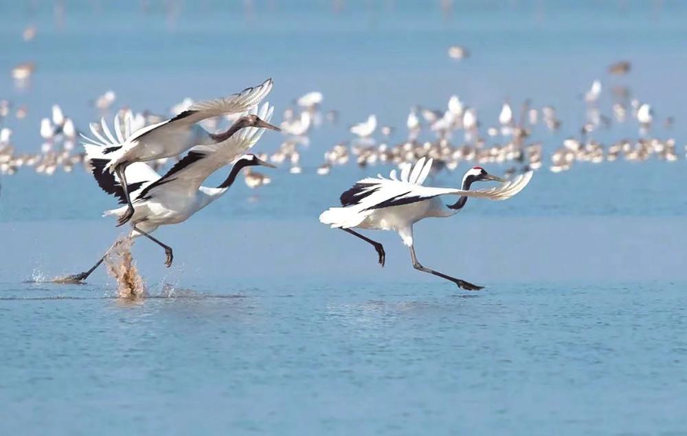 用圣洁的鹤羽白,为毕业之旅增添一份仙气与诗意。这里是丹顶鹤重要的越冬地,也是它们繁衍生息的家园。优雅的丹顶鹤,头顶丹砂,身披白雪,是湿地最灵动的精灵。丹顶鹤象征着吉祥、忠贞与高远,在这里许下对未来的美好期许,愿你们如丹顶鹤般志向高远,前程似锦。