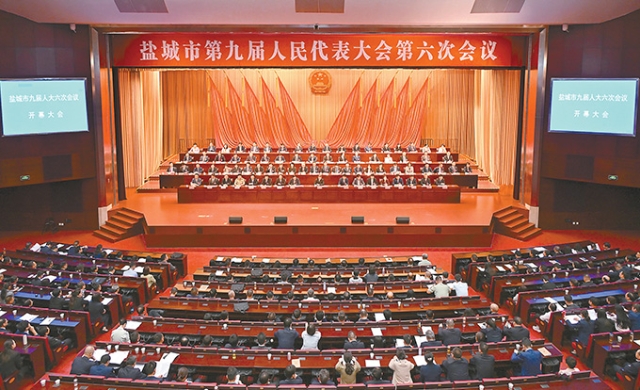 盐城人民大会堂气氛庄重热烈,场内悬挂的“坚持以习近平新时代中国特色社会主义思想为指引,奋力把中国式现代化盐城新实践不断推向前进!”标语,振奋人心、激发斗志。来自各条战线的人大代表们肩负着全市人民的信任与重托,精神饱满、齐聚一堂,依法履行宪法和法律赋予的神圣职责,共商发展大计,共谋奋进新篇。