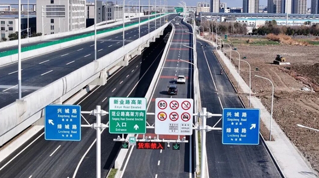 2025年12月30日,由市交投集团实施的新业路高架正式通车。至此,全市快速路网通车总里程已达180公里,盐城“快速交通一体化”总体格局基本形成。