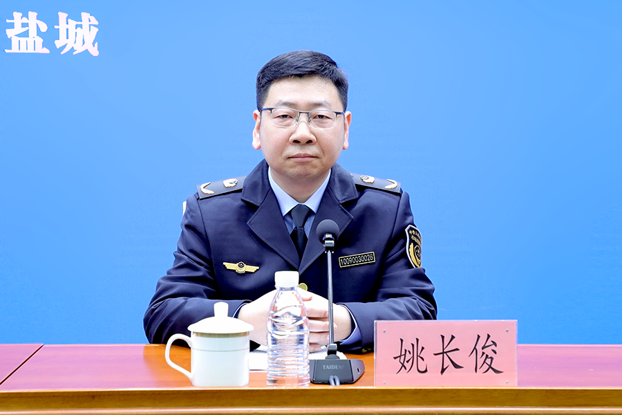 出席今天新闻发布会的有:盐城市市场监管局党组成员、副局长姚长俊先生;盐城市中级人民法院党组成员、副院长韩标先生;盐城市检察院党组副书记、副检察长钱亚祥先生;盐城市市场监管局四级调研员朱月明先生。我是盐城市人民政府副秘书长颜彦。