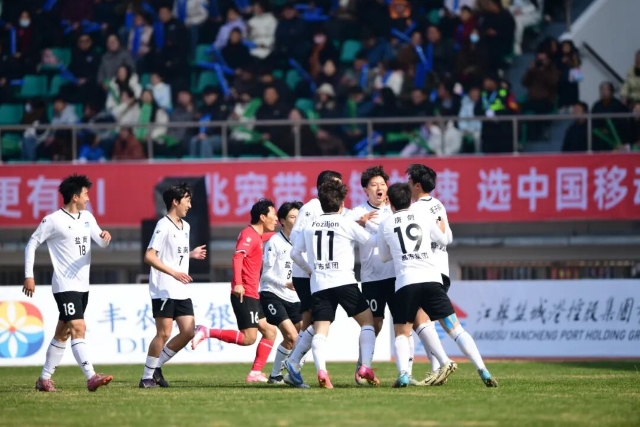 仲春时节,草木渐舒荣。上午9时整,大丰奥体中心体育场内,人浪涌动、声浪迭起,开幕式在欢快的乐曲声中拉开帷幕。融入麋鹿、丹顶鹤等生态元素的花车方阵巡游入场,青年演员带来刚柔并济的武术表演,尽显城市底蕴与时代风采。伴随着激昂澎湃的旋律,联赛会旗和16支参赛队队旗依次入场,凝心聚力、各展风采。入场仪式后,全场起立,高唱中华人民共和国国歌,歌声嘹亮、催人奋进。随后,运动员代表、裁判员代表分别宣誓。周斌来到绿茵场中央,为揭幕战开球。随着一声清脆哨响,比赛正式开始,欢呼声与呐喊声响彻全场,将赛事气氛推向顶点。
