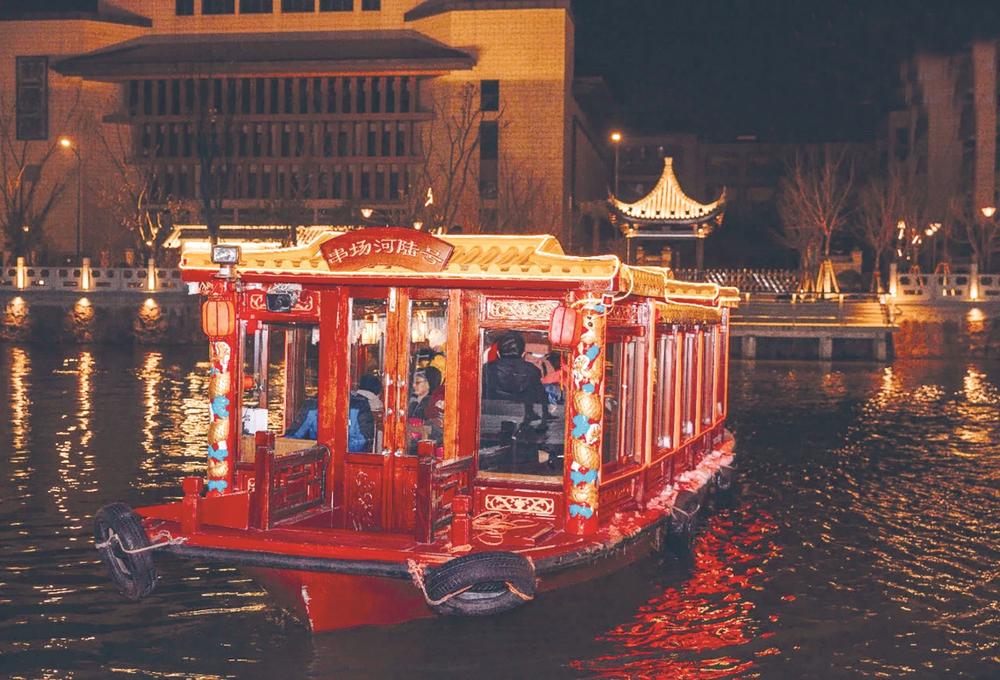 夜色降临时,登上串场河画舫。《串场夜画》在水面徐徐展开,两岸灯火倒映成流动的光带,盐镇水街的喧嚣、串场之眼的璀璨,都在桨声灯影里汇成千年盐渎的烟火人间。